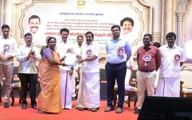 திருச்சி காட்டூர் மாண்ட் போர்ட் பள்ளியில், பள்ளிக் கல்வித் துறையின் சார்பில் நடைபெற்ற மாநில அளவிலான விழாவில் 10- ஆம் வகுப்பு, 12- ஆம் வகுப்பு அரசு பொது தேர்வுகளில் 100 சதவீதம் தேர்ச்சி பெற்ற 2982 அரசு, அரசு உதவி பெறும் உயர்நிலை, மேல்நிலைப் பள்ளிகளின் தலைமை ஆசிரியர்கள் மற்றும் தமிழ் பாடத்தில் 100 மதிப்பெண் பெற்ற 142 மாணவ, மாணவிகள் என மொத்தம் 3, 124 நபர்களுக்கு பாராட்டு சான்றிதழ் வழங்கும் விழா நடைபெற்றது. இதில் அமைச்சர்கள் அன்பில் மகேஷ் பொய்யாமொழி மற்றும் கே என் நேரு ஆகியோர் கலந்து கொண்டு பாராட்டு சான்றிதழ்களை வழங்கினர்.