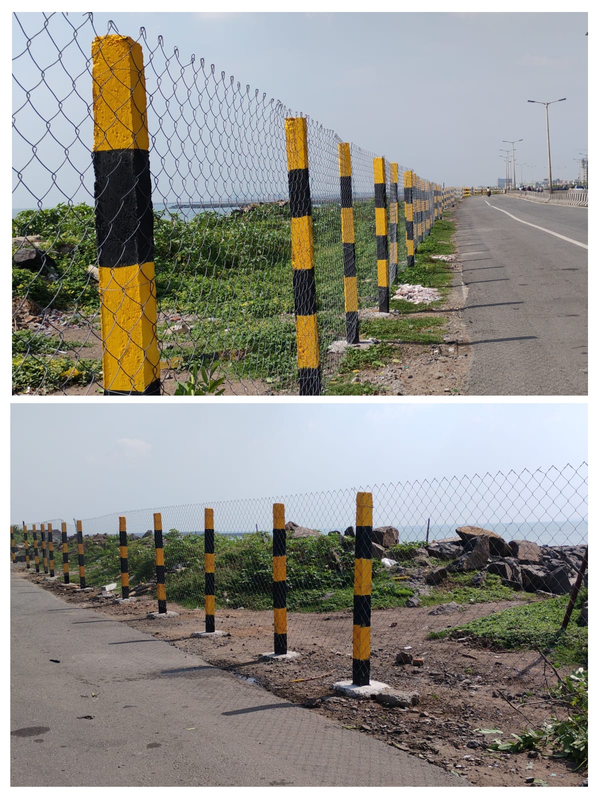இந்த உத்தரவின் பேரில் வடக்கு மண்டல வட்டார துணை ஆணையர் கட்டார் ரவி தேஜா தலைமையில் திருவொற்றியூர் மண்டல பொறுப்பு அதிகாரி பாண்டியன் தலைமையில் உதவி செயற்பொறியாளர் நக்கீரன் இளநிலை பொறியாளர்கள் தினேஷ் ஹேமகுமார் மற்றும் மாநகராட்சி ஊழியர்கள் கடலோர சாலையில் ஒரு கிலோ மீட்டர் தூரத்திற்கு சிமெண்ட் கான்கிரீட் தூண்கள் அமைத்து அதில் இரும்பு முன் கம்பி வேலி அமைக்கும் பணி நடைபெற்று வருகிறது
