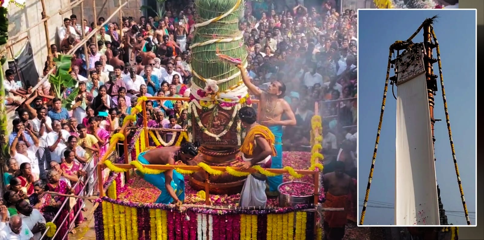 அப்போது கோவில் கோபுரங்களிலிருந்து மலர்களைத் தூவி கொடியேற்ற விழா வெகுவிமரிசையாக நடைபெற்றது. கொடியேற்றப்பட்டதை அடுத்துb திருவாரூர் தியாகராஜர் கோயில் ஆழித்தேரோட்டம் மார்ச் 29 ஆம் தேதி நடைபெற உள்ளதாக முறைப்படி அறிவிக்கப்பட்டது. இந்த நிகழ்ச்சியைக் காண திரளான பக்தர்கள் வந்திருந்தனர்.