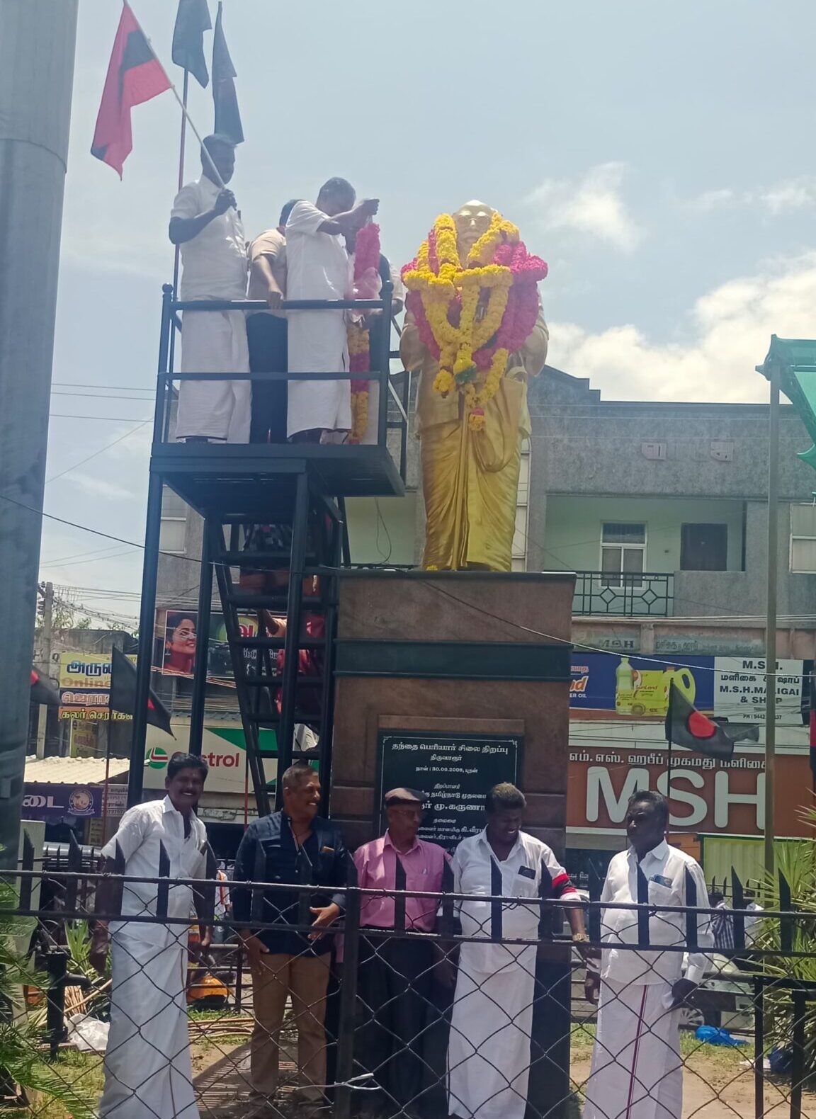 தந்தை பெரியார் 147 ஆவது பிறந்த நாளான திருவாரூர் டாக்டர் கலைஞர் பேருந்து நிலையம் அருகில் உள்ள தந்தை பெரியார் அவர்களின் திருஉருவ சிலைக்கு மதிமுக சார்பில் திருவாரூர் வடக்கு மாவட்ட செயலாளர் காசி சிவ வடிவில் மாலை அணிவித்து மரியாதை செலுத்தினார்.