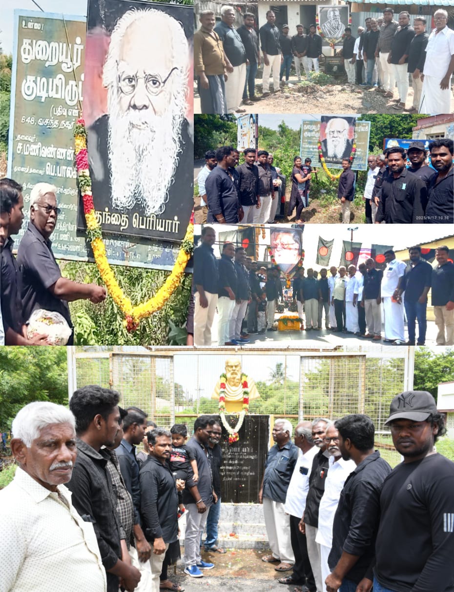 திருச்சி மாவட்டம் துறையூரில் திராவிடர் கழகம் சார்பில் துறையூர் திராவிட கழக மாவட்ட தலைவர் ஆசிரியர் மணிவண்ணன் தலைமையில் தந்தை பெரியாரின் 147வது பிறந்தநாள் (17-09-2025) கொண்டாடப்பட்டது.