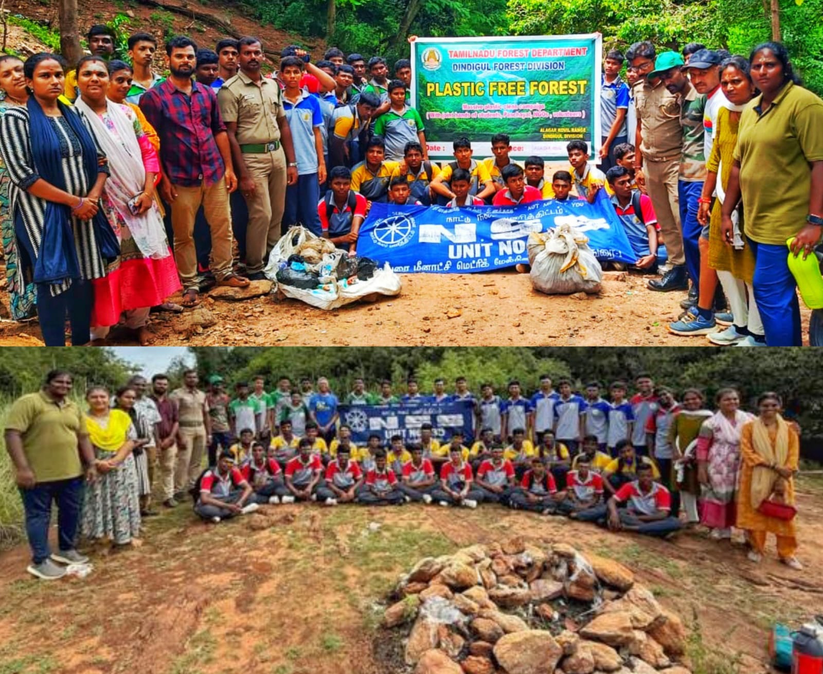 மதுரை மீனாட்சி பதின்ம மேல்நிலைப்பள்ளியின் நாட்டு நலப்பணித் திட்டத்தின் சார்பாக மதுரை அழகர் கோவில் இராக்காயி அம்மன் கோவிலின் மேற்பகுதி யில் உள்ள வனப் பகுதி யில் வனக்காவலர்கள் பாதுகாப்புடன் 7 கி.மீ. தூரம் மலையேறும் பயிற்சி மற்றும் நெகிழி (பிளாஸ்டிக்) பைகள் சேகரிப்பு மற்றும் அகற்றுதல் பணிகள் மேற்கொள்ளப்பட்டன. பள்ளியின் தாளாளர் ஜோதி செந்தில் வேல்முருகன், திட்ட அலுவலர் கோபால கிருஷ்ணன் , ஆசிரியர்கள் மற்றும் உடற்கல்வி ஆசிரியர், வனக் காவலர்கள் மற்றும் நாட்டு நலப்பணித் திட்ட மாணவர்கள் அனைவரும் இப்பணியில் ஈடுபட்டனர்.