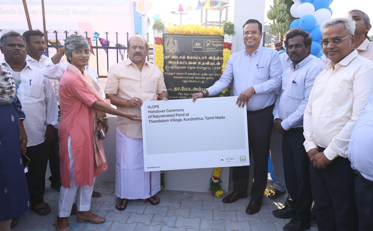 ஹூண்டாயின் H2OPE திட்டத்தின் கீழ் ₹1.73 கோடி செலவில் நிறைவேற்றப்பட்ட இந்த திட்டம், குளத்தின் சேமிப்பு திறனை 21,840 கன மீட்டராக உயர்த்தி, இப்பகுதியின் நிலத்தடி நீர் மட்டம் மற்றும் மீள்நிரப்பு திறனை கணிசமாக வலுப்படுத்தி, மக்களுக்கான நீர் ஆதாரத்தை மேம்படுத்தப்பட்டது.