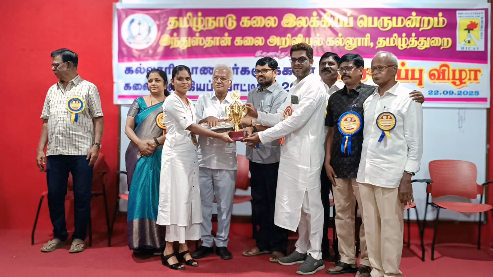 தமிழ்நாடு கலை இலக்கியப் பெருமன்றம் இந்துஸ்தான் கலை அறிவியல் கல்லூரி தமிழ் துறையும் இணைந்து நடத்திய கலை இலக்கியப் போட்டிகளில் வெற்றி பெற்ற மாணவர்களுக்கு தமிழ்நாடு சிறுபான்மை ஆணைய தலைவர் முகம்மது ரஃபி பரிசு வழங்கி கவுரவித்தார்…