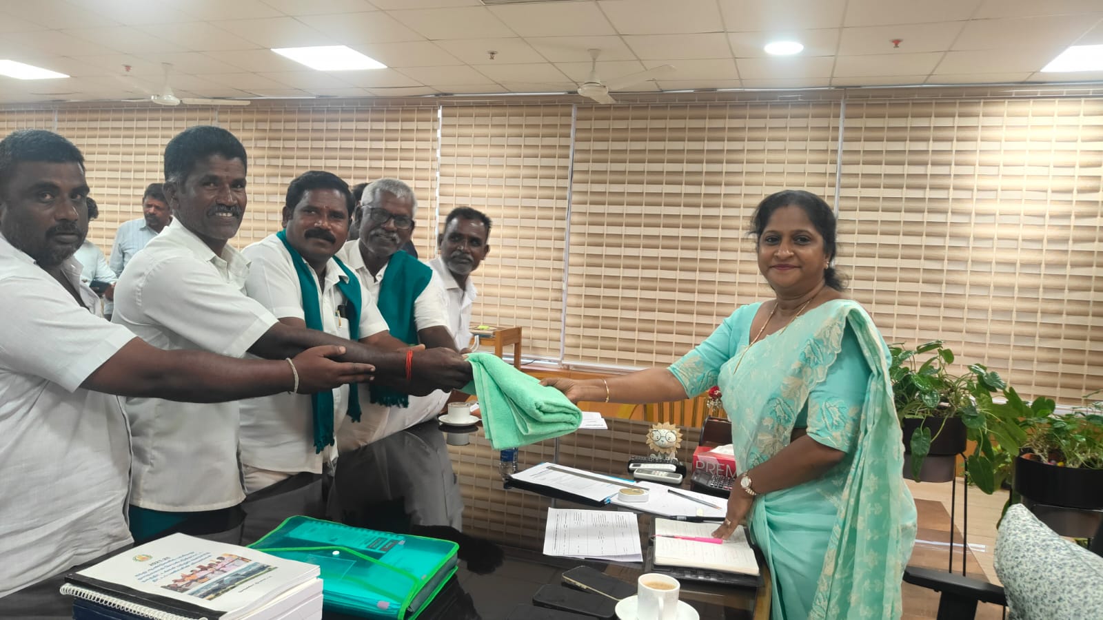 தேசிய தென்னிந்திய நதிகள் இணைப்பு விவசாயிகள் சங்கம் செங்கல்பட்டு மாவட்ட ஆட்சியர் அம்மையீர் அவர்களை. மாவட்டத் தலைவர் ஆத்தூர் ஏ.பி. சண்முகம். பாலாற்று மணி மாநிலத் தலைவர். மாவட்ட பொருளாளர் கூடலூர்B .முருகன். அச்சரப்பாக்கம் ஒன்றிய தலைவர் ராமலிங்கம். பத்மநாபன். சீனு. மற்றும் நிர்வாகிகள் மரியாதை நிமித்தமாக சந்தித்தனர்
