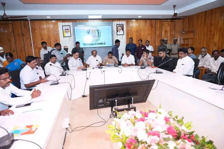 முதல்வர் வருகை ஆய்வு கூட்டம் தமிழ்நாடு முதலமைச்சர் மு.க.ஸ்டாலின் வருகின்ற 29, 30 ஆகிய தேதிகளில் இராமநாதபுரம் மாவட்டத்திற்கு வருகை தந்து பல்வேறு நலதிட்டங்கள் பயனாளிகளுக்கு வழங்க உள்ள நிலையில், அதுகுறித்து ஆய்வுக்கூட்டம் இராமநாதபுரம் மாவட்ட ஆட்சியர் அலுவலக வளாகத்தில் மாவட்ட ஆட்சியர் முன்னிலையில் தமிழக நிதி மற்றும் சுற்றுசூழல் காலநிலை மாற்றத்துறை அமைச்சர் தங்கம் தென்னரசு மற்றும் வனத்துறை அமைச்சர் ஆர்.எஸ்.ராஜகண்ணப்பன் ஆகியோர் தலைமையில் நடைபெற்ற நிகழ்வில் மாவட்டசெயலாளரும் சட்டமன்ற உறுப்பினருமான காதர்பாட்ஷா முத்துராமலிங்கம் மற்றும் சட்டமன்ற நாடாளுமன்ற உறுப்பினர்கள் மாவட்ட காவல் கண்காணிப்பளர் மற்றும் , அரசு அலுவலர்கள் உள்ளிட்டோர் கலந்துகொண்டனர்.