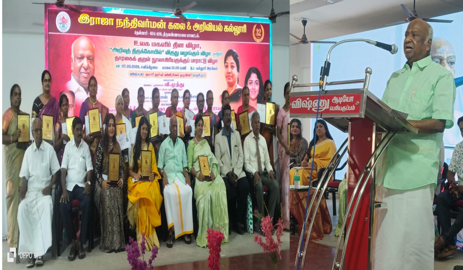 முன்னதாக, காஞ்சிபுரம் குமாரி ஹர்ஷி வஜ்ஜரவேல் குழுவினரின் வரவேற்பு நடனம் நடைபெற்றது. மேலும் வந்தவாசி பகுதியில் சிறப்பாக பணியாற்றிய பல்வேறு பள்ளிகளைச் சேர்ந்த 20 ஆசிரியைகளுக்கு ‘அறிவுத் திருக்கோயில் விருது’ வழங்கப்பட்டது. அரூர் கலை நிலா குழுவினரின் கலை நிகழ்ச்சிகள் நடைபெற்றது. மகளிர் தின சிறப்பு போட்டியில் வெற்றி பெற்ற மாணவர்களுக்கு சான்றிதழ் வழங்கப்பட்டது.