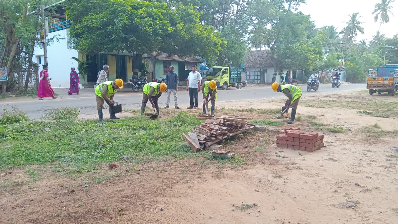 வலங்கைமான் லாயம் பகுதியில் ஜந்து ஆலயங்களின் சுவாமிகள் சங்கமித்து அம்பு போடும் இடத்தில் பேரூராட்சி சார்பில் தூய்மைப் பணிகள் நடைபெற்றன.