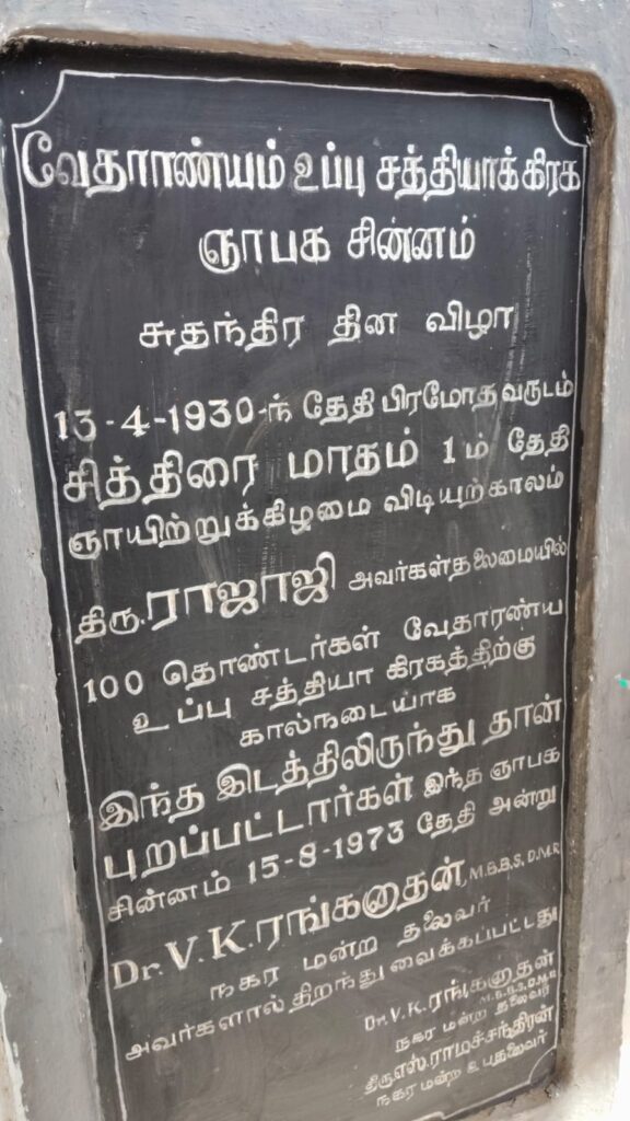 வகிக்கிறது. இதன் ஒரு அங்கமாக தமிழகத்தில் மூதறிஞர் ராஜாஜியின் தலைமையில் தஞ்சை மாவட்டம் வேதாரண்யத்தில் உப்பு சத்தியாகிரகம் நடந்தது. இதை சர்தார் வேதரத்னம் முன்னின்று நடத்தினார்.