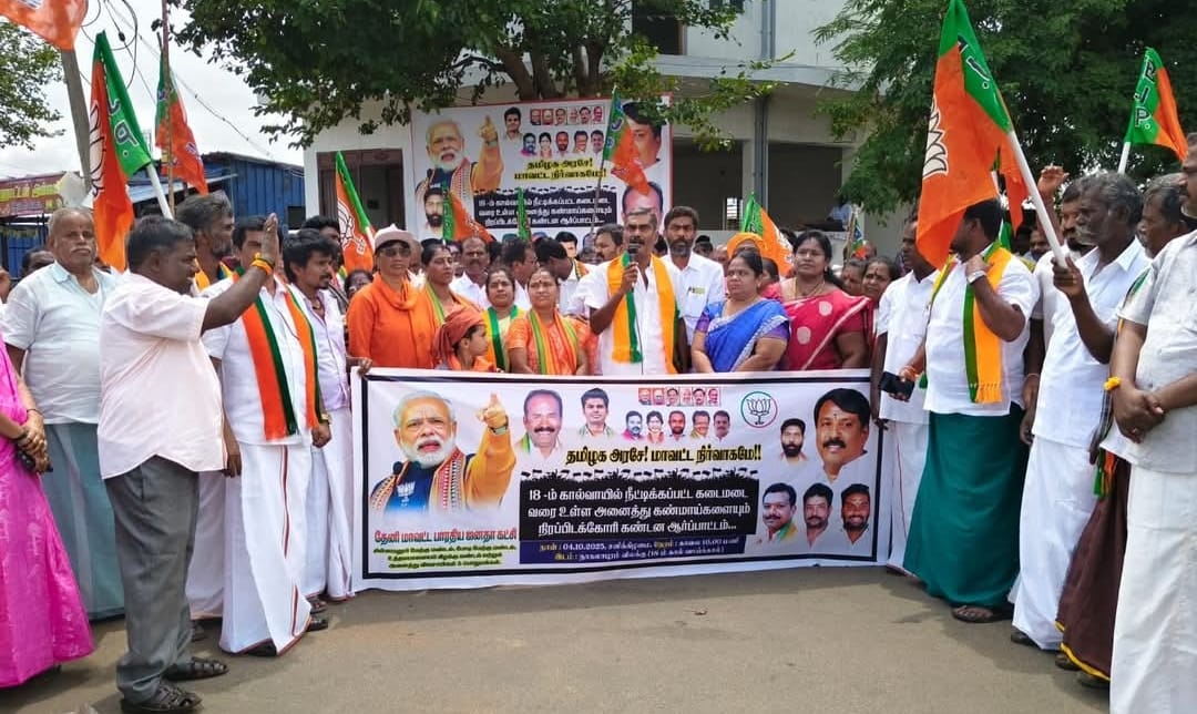 போடி அருகே 18 ஆம் கால்வாயில் தண்ணீர் திறக்க கோரி பாஜக ஆர்ப்பாட்டம்