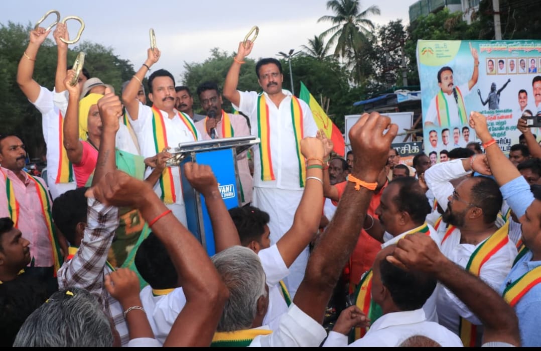 உத்தமபாளையத்தில் நமது மக்கள் முன்னேற்றக் கழகம் சார்பில் கவன ஈர்ப்பு ஆர்ப்பாட்டம்