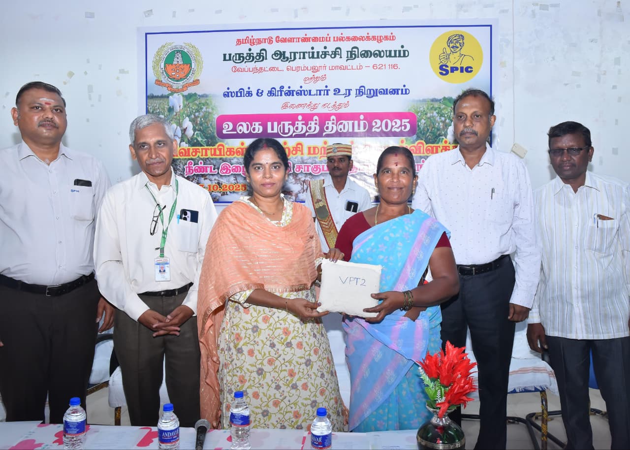 விவசாயிகளுக்கு வி.பி.டி 1, மற்றும் வி.பி.டி 2 என்ற இரண்டு பருத்தி ரகங்கள் வெளியிட்டுள்ளது. வி.பி.டி 1 ரகத்தின் மகசூல் திறன் 1,986 கிலோ/ஹெக்டர் ஆகும். தமிழ்நாட்டின் மானாவாரி, குளிர்கால பாசனம் மற்றும் நெல் தரிசு நிலங்களுக்கு பருத்தி ரகம் வி.பி.டி 2 வெளியிடப்பட்டது. இந்த ரகம் அதிக அடர்த்தி நடவு முறையின் கீழ் மகசூல் திறன் 2,132 கிலோ/ஹெக்டர் ஆகும். இது இயந்திர அறுவடைக்கு ஏற்ற கச்சிதமான ரகமாகும். இதனால் 1 ஏக்கர் பருத்தியை 45 நிமிடங்களில் அறுவடை செய்யலாம். இந்த விதைகளைப் பெற்று விவசாயிகள் பயன்பெற வேண்டும்.