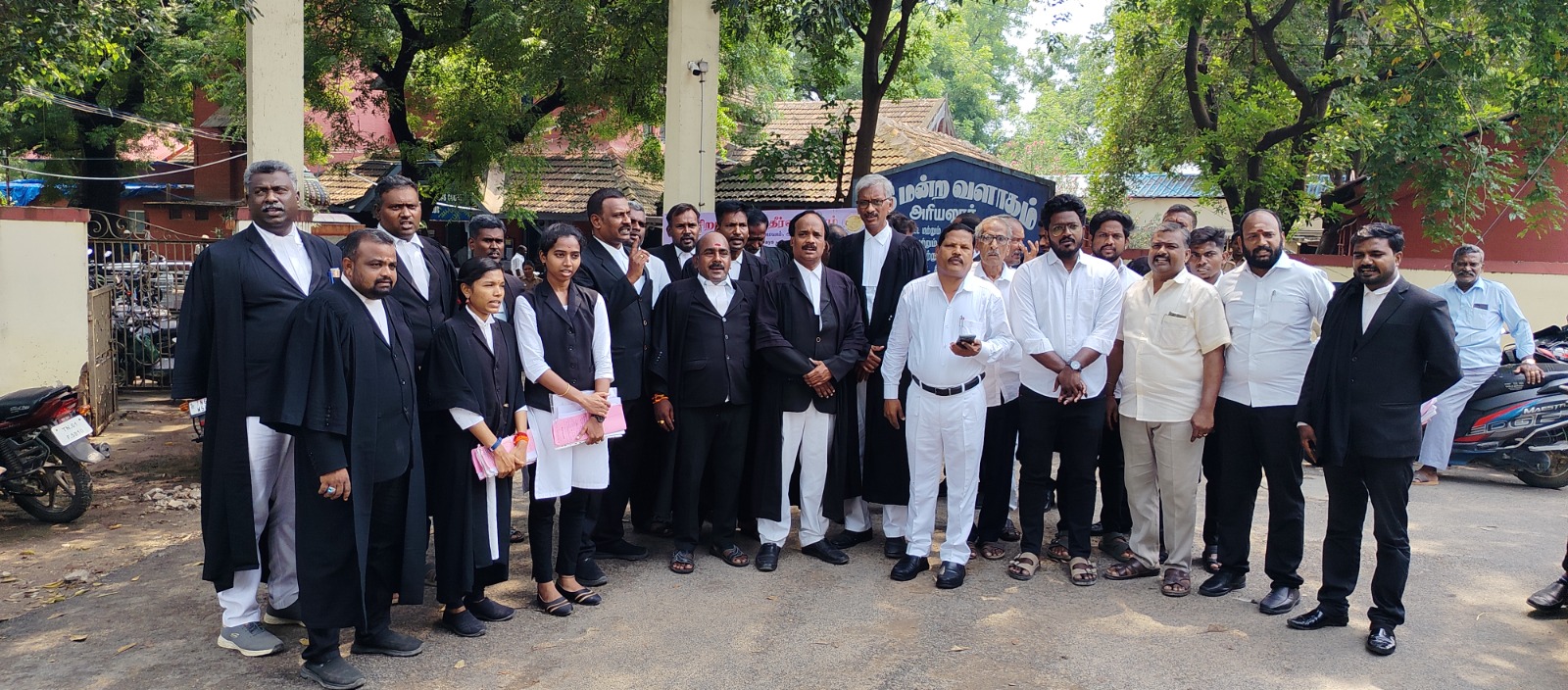 வழக்கறிஞர்கள் சங்க தலைவர் இரா மனோகர் ஆர்ப்பாட்டத்திற்கு தலைமை தாங்கினார் செயலாளர் ராஜா பொருளாளர் கமலக்கண்ணன் ஆகியோர் முன்னிலை வகித்தனர் வழக்கறிஞர் பகுத்தறிவாளன் கண்டன உரை நிகழ்த்தினார் மூத்த வழக்கறிஞர் லட்சுமிபதி அரசு வழக்கறிஞர் த ஆ கதிரவன் முத்துக்குமார் விஜயகுமார் செல்வநம்பி ராஜாசிற்றம்பலம் பாண்டித்துரை சின்னராஜா ராஜசேகர் நூர்தின்ராஜா எஸ்.பாலாஜி சுகுமார் கஜேந்திரன் கௌசல்யா சரண்யா உட்பட ஏராளமான வழக்கறிஞர்கள் ஆர்ப்பாட்டத்தில் கலந்து கொண்டு கண்டன கோஷங்களை எழுப்பினார்கள்
