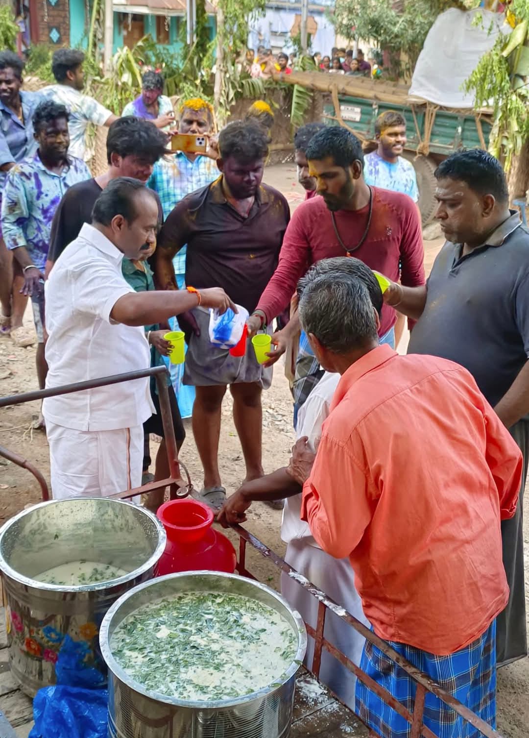 பெரியகுளம் அருகே கோவில் திருவிழாவில் பக்தர்களுக்கு நீர் மோர் வழங்கிய பாஜக மாவட்டத் தலைவர் தேனி மாவட்டம் பெரியகுளம் அருகே உள்ள
