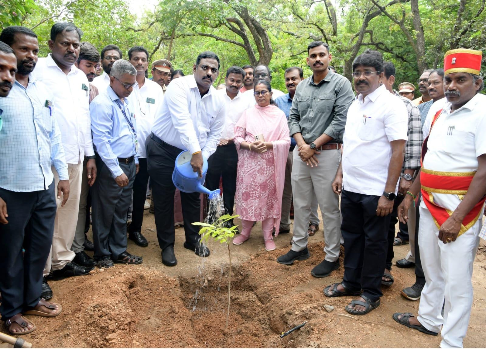 போச்சம்பள்ளி அரசு ஆண்கள் மேல்நிலைப்பள்ளியில், பசுமைப் பள்ளி தொடக்க விழாவை மாவட்ட ஆட்சித்தலைவர் தினேஷ் குமார் குத்து விளக்கு ஏற்றி துவக்கி வைத்து, மரக்கன்றுகளை நட்டு வைத்தார்