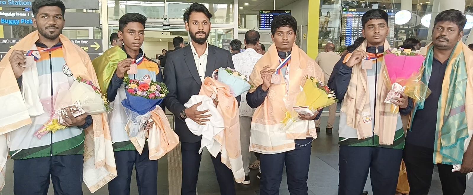 இறுதியாக நான்காம் இடம் பிடித்த நிலையில் தமிழக வீரர்கள் சென்னை திரும்பினார்கள் அவர்களுக்கு உறவினர்கள், ஐஸ் ஆக்கி விளையாட்டு ஆர்வலர்கள் பூ கொத்துகள் கொடுத்தும், சால்வை அணிவித்து வரவேற்றனர்,