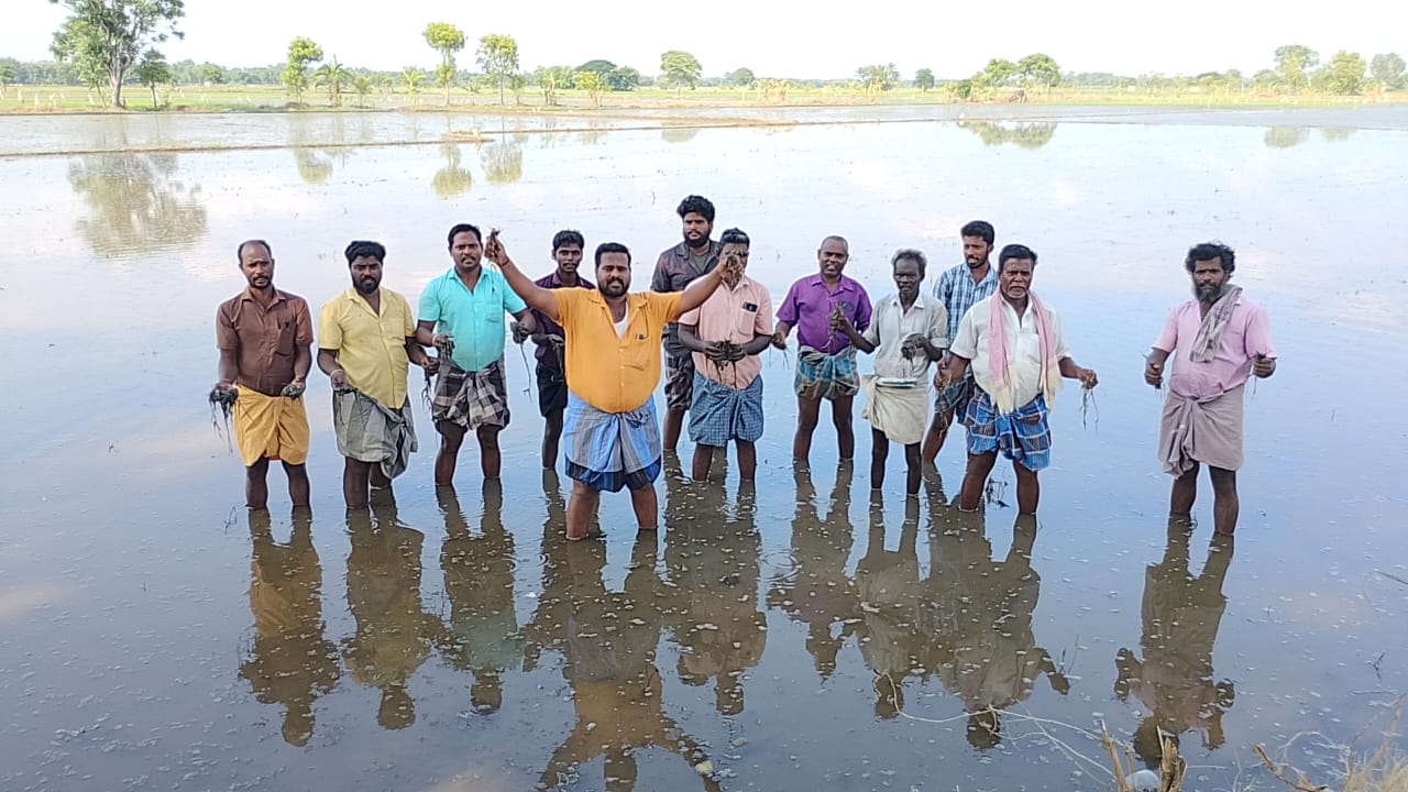 எனவே விவசாயிகளின் கோரிக்கையை ஏற்று உடனடியாக போர்க்கால அடிப்படையில் தமிழக அரசு பொதுப்பணித்துறை அதிகாரிகள் மூலம் பாசன வடிகால் வாய்க்காலை தூர்வாரி நீரில் மூழ்கிய நெற்பயிரை காப்பாற்றி உரிய இழப்பீடு வழங்கி விவசாயிகள் வாழ்வாதாரத்தை காப்பாற்ற வேண்டும் என வலியுறுத்தி விவசாயிகள் வயலில் இறங்கி கோஷங்கள் எழுப்பி கோரிக்கைகளை வலியுறுத்தி ஆர்ப்பாட்டத்தில் ஈடுபட்டனர்..