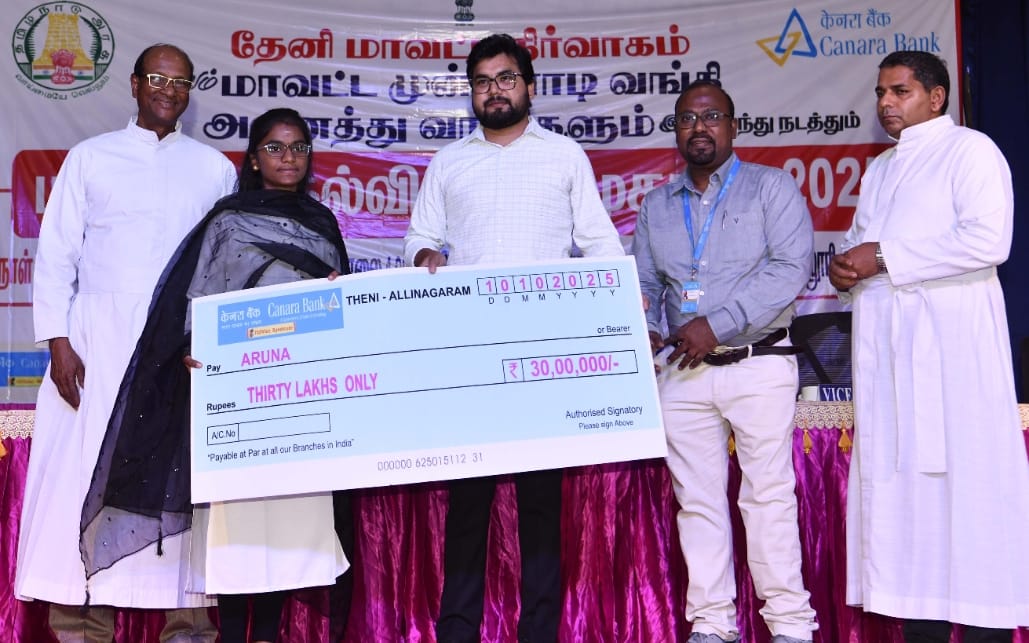 மேலும் இதர மாணவர்களின் கல்விக் கடன் விண்ணப்பங்கள் விரைந்து பரிசீலனை செய்யப்பட்டு கல்வி கடன் கல்விக் கடன் வழங்கப்படும் இந்த நிகழ்ச்சியில் மாவட்ட முன்னோடி வங்கி மேலாளர் கார்த்திகேயன் கனரா வங்கி சுய வேலைவாய்ப்பு பயிற்சி மைய நிறுவனத்தின் இயக்குனர் ரவிக்குமார் தாசில்தார் மருதுபாண்டி கல்லூரி முதல்வர் ஜசக் துணை முதல்வர் மரு.ஜோசிபுரம்தொட்டு மற்றும் அனைத்து வங்கி அலுவலர்கள் உள்ளிட்ட பலர் கலந்து கொண்டனர்