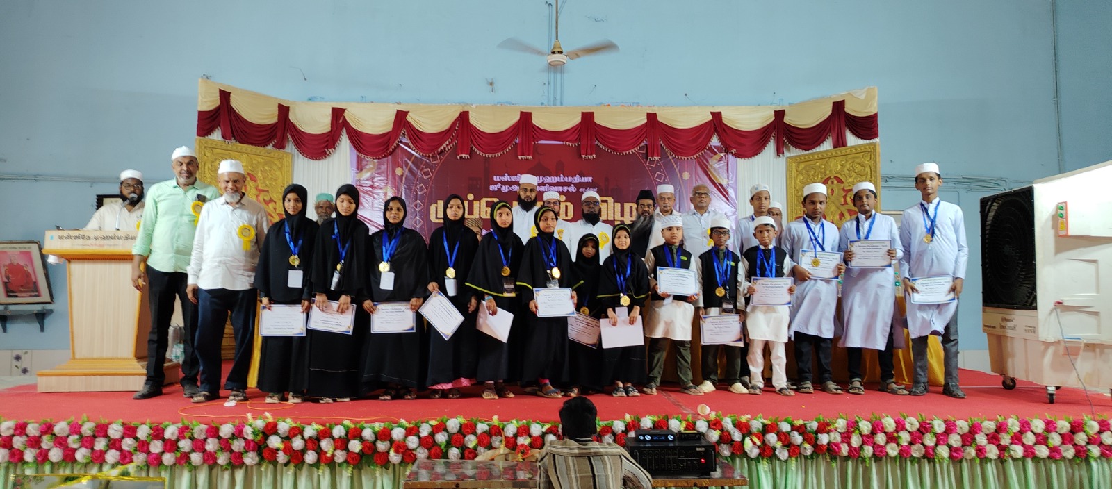 மாணவர் எஸ் முகம்மது ஹாபிழ் கிராஅத் ஓதினார் நபிகள் நாயகம் பற்றி அன்வாருல் குர்ஆன் நிஸ்வான் மதரஸா மாணவிகள் நபிகள் நாயகம் பற்றி கீதம் பாடினார்கள் சென்னை அல்ஹுதா அரபிக் கல்லூரி முதல்வர் அல்ஹாஃபிழ் அல்ஹாஜ் முனைவர் டாக்டர் எம்.சதீதுத்தீன் ஃபாஜில் பாக்கவீ ஹஜ்ரத் சிறப்புரையாற்றினார்