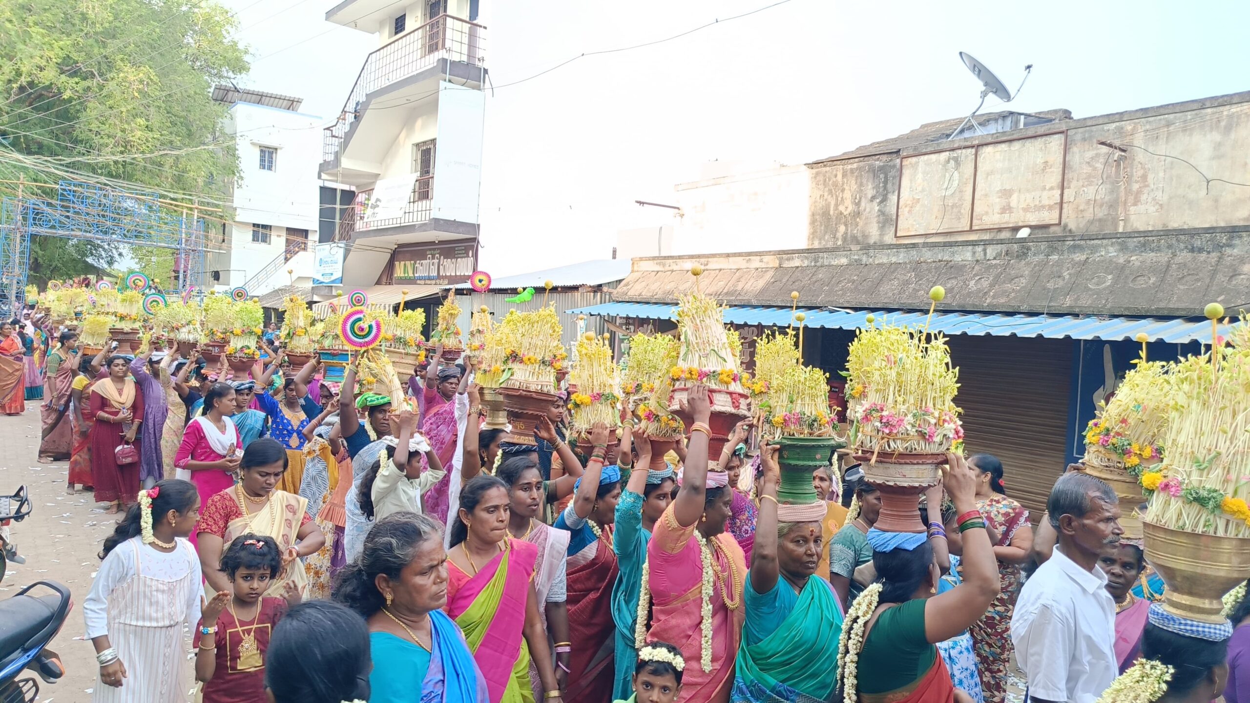 ராமநாதபுரம் மாவட்டம், கமுதி அருகே உள்ள பேரையூர் வடக்கு தெருவில் உள்ள ஸ்ரீ அரியநாச்சியம்மன் கோவில் பொங்கல் திருவிழாவை முன்னிட்டு, மேளதாளம் முழங்க 500க்கும் மேற்பட்ட பெண்கள் முளைப்பாரி எடுத்து ஊர்வலமாக சென்றனர். பொங்கல்