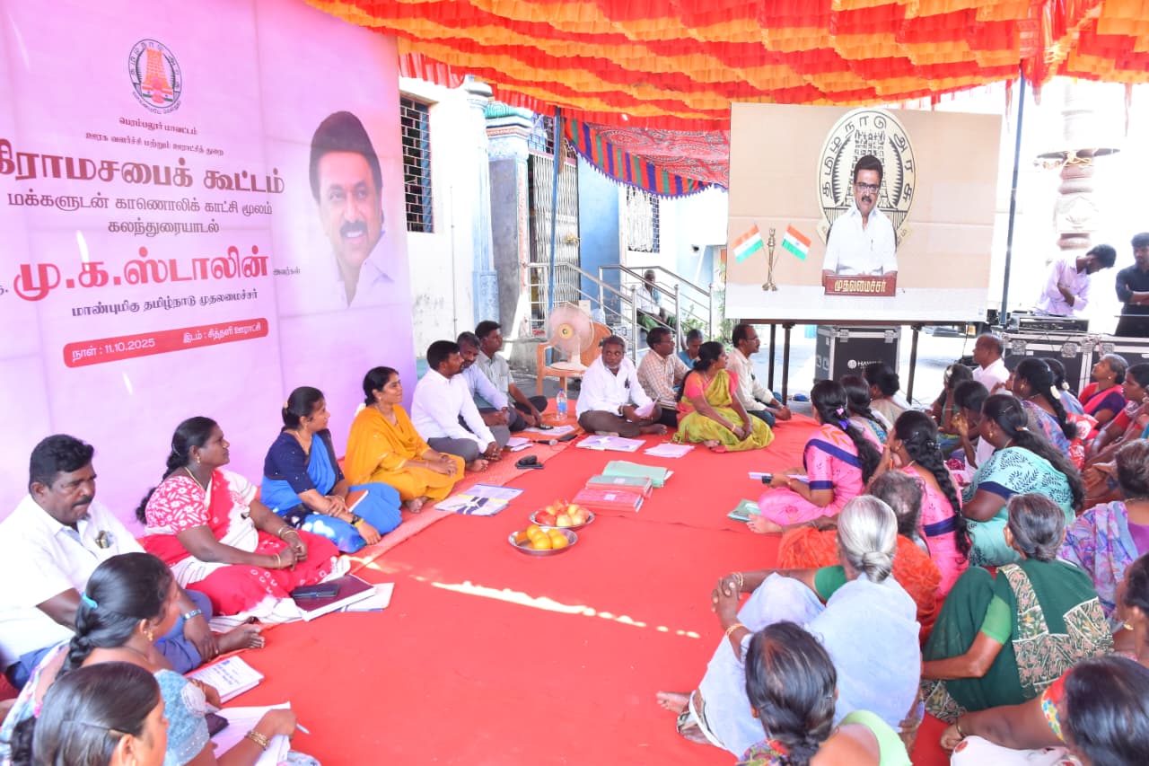 பெரம்பலூர் மாவட்டத்தில் அண்ணல் காந்தியடிகளின் பிறந்த நாளை முன்னிட்டு அன்று (02.10.2024) நடைபெறவிருந்த கிராமசபைக் கூட்டம் (11.10.2025 ) 121 ஊராட்சிகளிலும் நடைபெற்றது. தமிழ்நாடு முதலமைச்சர் சென்னையில் இருந்து காணொளி காட்சி வாயிலாக பொதுமக்களிடம் உரையாடினார்கள்.