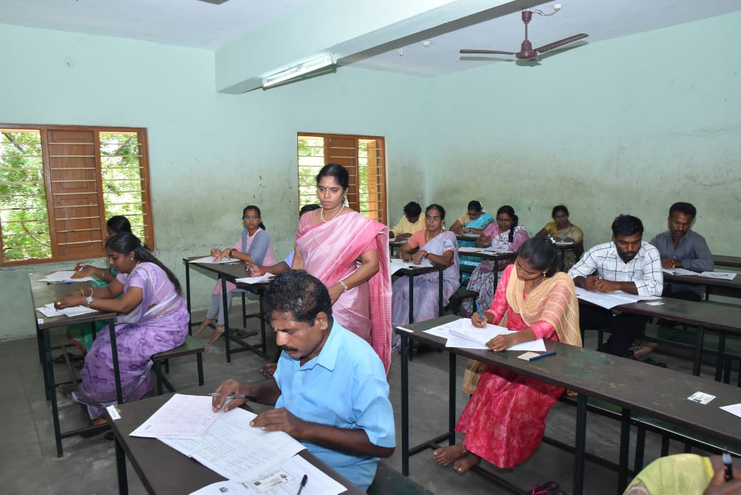 தமிழ்நாடு ஆசிரியர் தேர்வு வாரியத்தின் மூலம் நடத்தப்பட்ட ஆசிரியர் தகுதித்தேர்வில் தேர்ச்சிபெற்ற இடைநிலை ஆசிரியர்களுக்கான தேர்வு இன்று மாநிலம் முழுவதும் நடைபெற்றது. அதனடிப்படையில், 16 தேர்வு மையங்களில் 56 மாற்றுத்திறனாளிகள் உட்பட மொத்தம் 4,528 நபர்கள் விண்ணப்பிதத்திருந்த நிலையில், 4,280 நபர்கள் தேர்வெழுதினார்கள்.