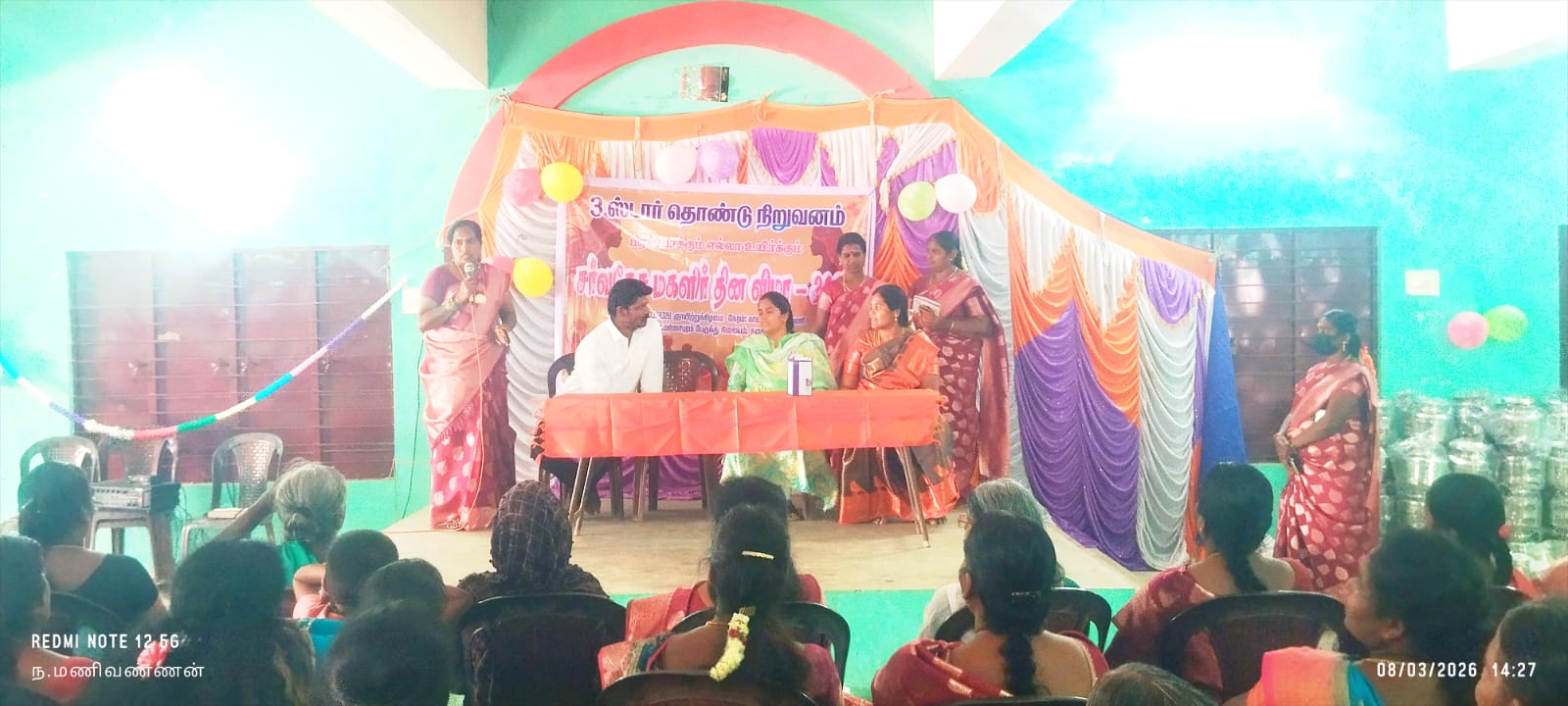 முன்னதாக சுய உதவி குழு மகளிருக்கு இசை நாற்காலி கோலப்போட்டி பேச்சுப்போட்டி கவிதை போட்டி பாட்டிலில் தண்ணீர் நிரப்பும் போட்டி மோர் குடிக்கும் போட்டி சிறப்பாக நடைபெற்றது போட்டியில் கலந்து வெற்றி பெற்ற மகளிருக்கு பரிசுகள் வழங்கப்பட்டது