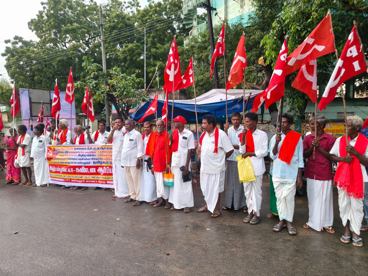 அரியலூரில் நடந்தது இந்திய கம்யூனிஸ்ட் கட்சி சார்பில் கண்டன ஆர்ப்பாட்டம் நடந்தது உச்ச நீதிமன்ற தலைமை நீதிபதி பி ஆர் கவாய் மீது செருப்பு வீச முயற்சித்த சனாதான மதவெறியன் வழக்கறிஞர் கிஷோரை வன்கொடுமை சட்டத்தில் கைது செய்ய வலியுறுத்தி நடந்த ஆர்ப்பாட்டத்திற்கு மாநில கட்டுப்பாட்டு குழு உறுப்பினர் மாவட்ட துணைச் செயலாளர் டி தண்டபாணி தலைமை தாங்கினார் மாவட்ட செயலாளர் கே நடராஜன் முன்னிலை வகித்தார்