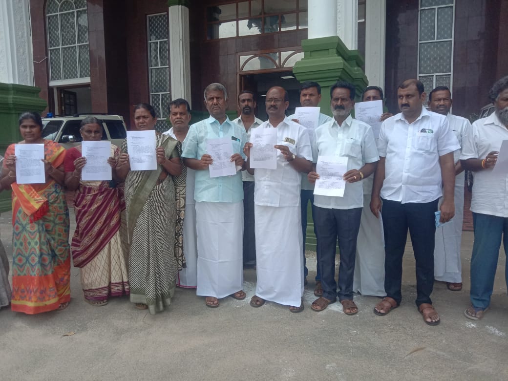 கரூர் மாவட்டம் அரவக்குறிச்சி பகுதி கருக்கம்பாளையம் பிரிவு முதல் வண்டாரிபாளையம் ஊர் வழியாக திருப்பூர் மாவட்ட எல்லை வரை பஞ்சாயத்து இட்டேரி கைப்பாதை 4 கி.மீ. வரை உயர்மின்னழுத்த மின்கம்பங்கள் அமைக்கப்படுவதால் ஏற்படும் உயர்மின்னழுத்த பாதுகாப்பு பிரச்சனைகள் காரணமாக மின்கம்பங்களை அமைப்பதற்கு வழங்கப்பட்ட அனுமதியை ரத்து செய்து, மாற்று வழிகள் மூலம் மின்கம்பங்களை அமைக்க கோருதல்-சார்பில் மாவட்ட ஆட்சியர் அலுவலகத்தில் மனு அளித்தனர்..