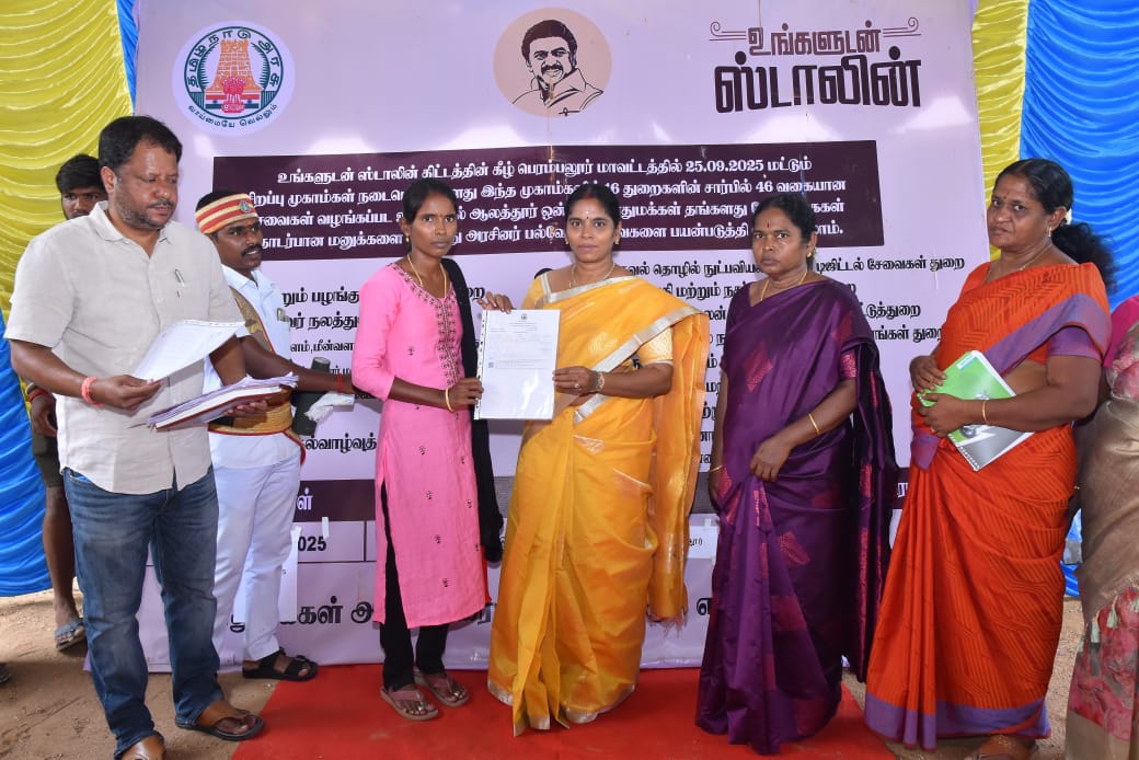 பெரம்பலூர்.அக்.14.”உங்களுடன் ஸ்டாலின்” திட்ட முகாம் பெரம்பலூர் மாவட்டம் ஆலத்தூர் வட்டத்திற்குட்பட்ட ஜெமீன் ஆத்தூர், ராமலிங்கபுரம் ஆகிய ஊராட்சிகளைச் சேர்ந்த பொதுமக்களுக்கு ஜெமீன் ஆத்தூர் அரசு உயர்நிலைப் பள்ளியிலும், குன்னம் வட்டத்திற்குட்பட்ட ஓலைப்பாடி ஊராட்சியை சேர்ந்த பொதுமக்களுக்கு வேப்பூர் அரசு மேல்நிலைப் பள்ளியிலும் இன்று (14.10.2025) நடைபெற்றது.