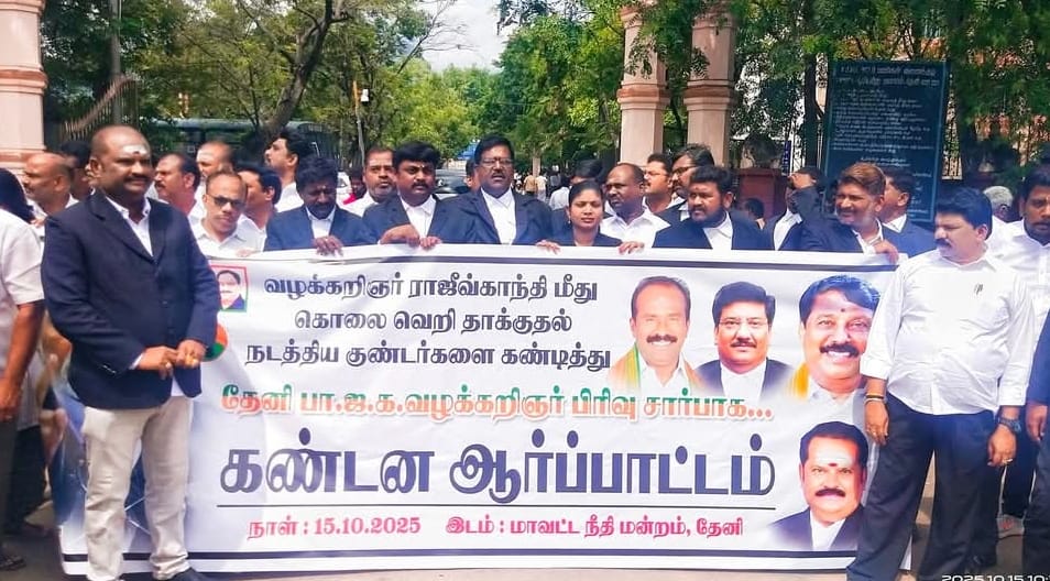 தேனியில் பாஜக வழக்கறிஞர் பிரிவு சார்பாக கண்டன ஆர்ப்பாட்டம்