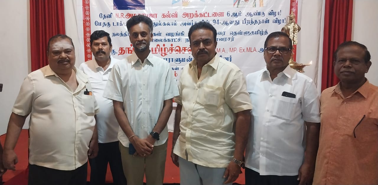 தேனி மாவட்டம் தேனி இன்டர்நேஷனல் ஹோட்டலில் தேனி என்.ஆர். அழகராஜா கல்வி அறக்கட்டளையின் நான்காம் ஆண்டு விழா இந்திய திருநாட்டின் முன்னாள் ஜனாதிபதி மறைந்த மாமேதை ஏபிஜே அப்துல் கலாமின் 94வது பிறந்தநாள் விழா மிக சிறப்பாக நடைபெற்றது இந்த நிகழ்ச்சியில் கருணா ஆயில் மில்ஸ் அதிபர் தேனி விளையாட்டுக் கழகம் தலைவருமான எம் கருணாகரன் குத்துவிளக்கு ஏற்றி நிகழ்ச்சியை துவக்கி வைத்தார் தேனி நகரின் மனிதநேயச் செம்மல் லைன் டி. ராஜ்மோகன் தலைமை வகித்தார் தேனி தொழிலதிபர் லயன் கே.ஏ. ராதாகிருஷ்ணன் முன்னிலை வகித்தார் தேனி நகரின் ஆடிட்டர் லையன் ஆர். ஜெகதீஷ் வழக்கறிஞர் எம் கே எம் முத்துராமலிங்கம் ஆகியோர் வாழ்த்துரை வழங்கினார்கள்.
