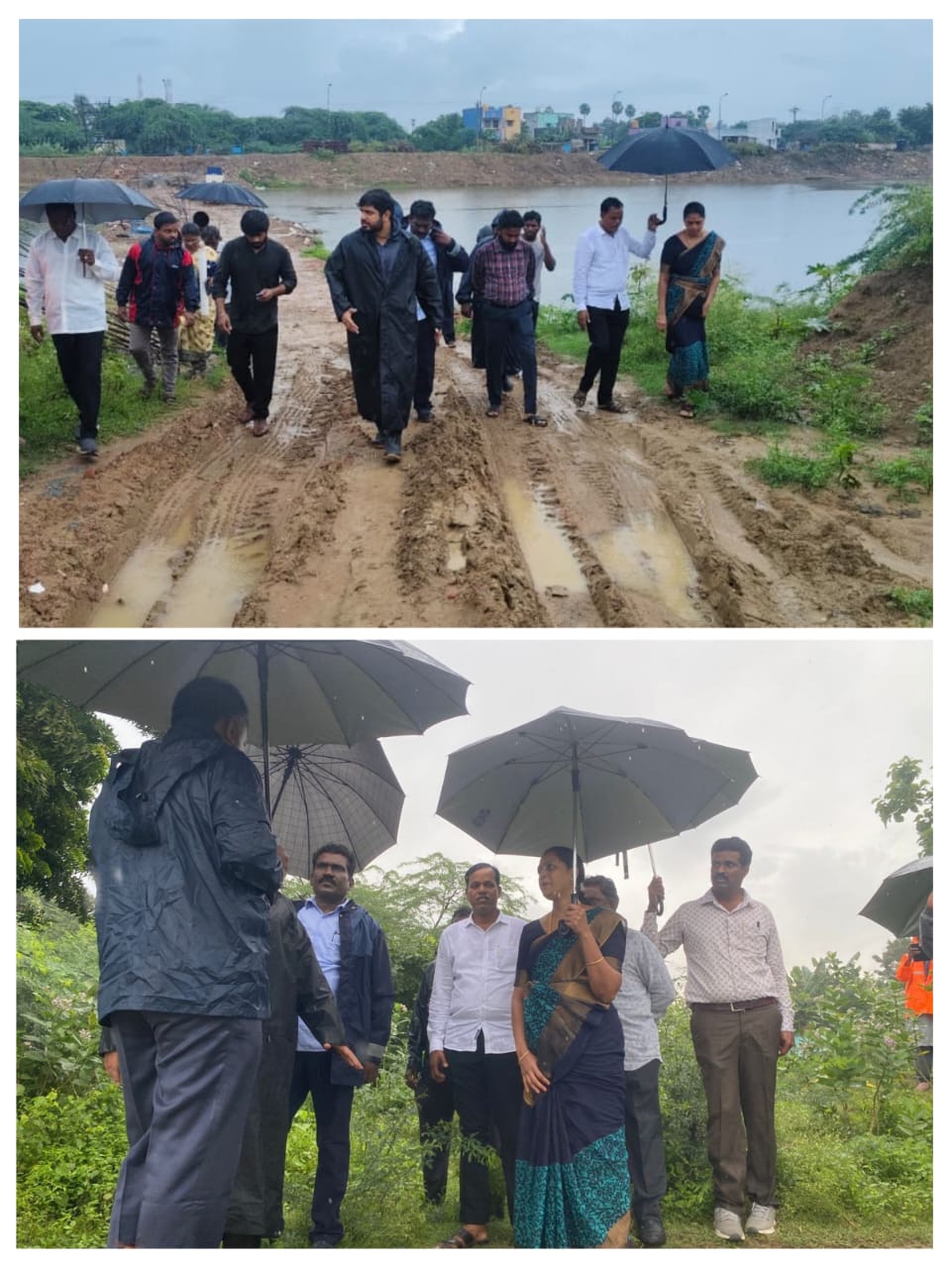 அப்போது கரை பலவீனமாக உள்ள இடங்களை உடனடியாக சீர் செய்வது எனவும் மேலும் மணல் மூட்டைகள் தேவைப்படும் இடங்களில் அடுக்கி இளமையை சரி செய்யவும் நடவடிக்கை எடுக்கப்பட்டுள்ளது என அதிகாரிகள் தெரிவித்தனர் மேலும் புது நாப்பாலையம் சடையங்குப்பம் ஆர் எல் நகர் போன்ற பகுதிகளில் அதிகாரிகள் குழு பார்வையிட்டு ஆய்வு மேற்கொண்டனர்