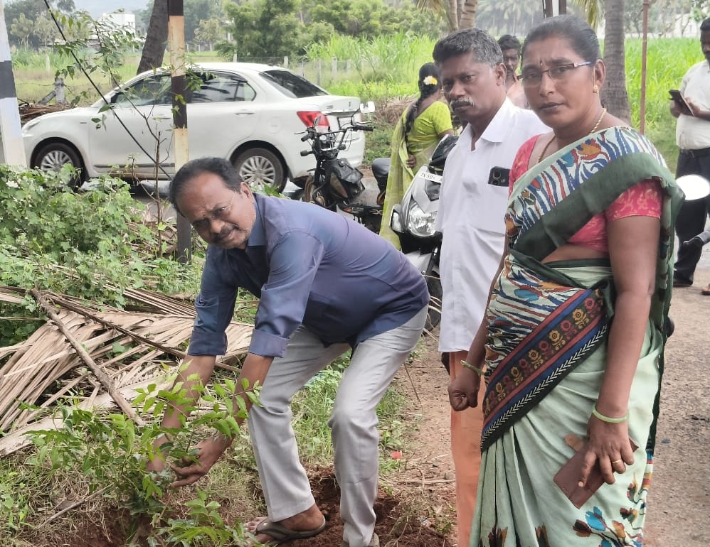 தேனி அருகே பனை மரங்களை நடவு செய்த ஊராட்சி செயலாளர்