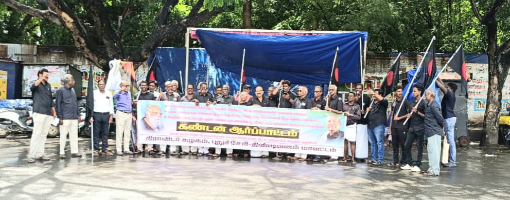 புதுச்சேரி உச்ச நீதிமன்றத் தலைமை நீதிபதி மீது செருப்பு வீச்சு, புதுவைப் பல்கலைக்கழக மாணவர்கள் மீது பொய்வழக்கு ஆகியவற்றைக் கண்டித்து திராவிடர் கழகம் சார்பில் மாபெரும் ஆர்ப்பாட்டம்.