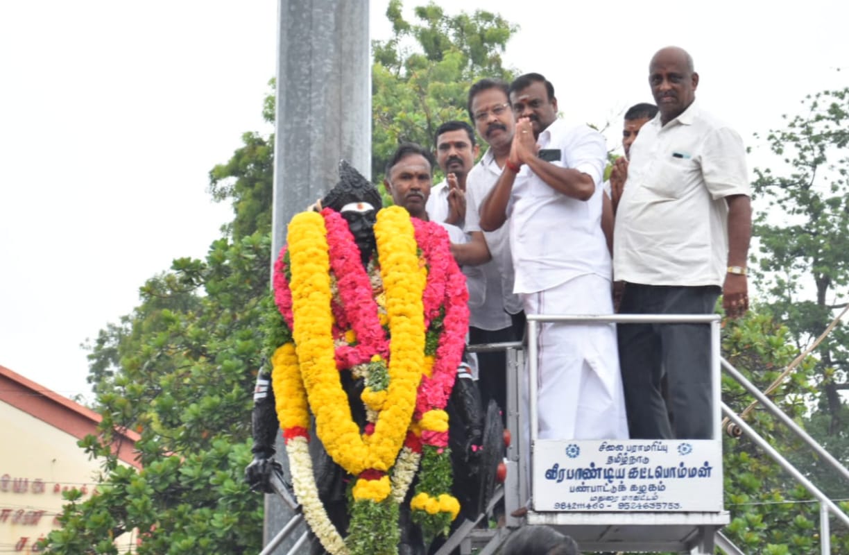 சுதந்திர போராட்ட வீரர் வீரபாண்டிய கட்டபொம்மனின் நினைவு தினத்தை முன்னிட்டு, மதுரை பெரியார் பேருந்து நிலையம் அருகே உள்ள அவரது திருவுருவச் சிலைக்கு, தமிழ்நாடு ஒருங்கிணைந்த மதுரை மாவட்ட யாதவ மகாசபை சார்பாக மாவட்ட தலைவர் நாட்டாமை ஜெயக்குமார் மாலை அணிவித்து மரியாதை செலுத்தினார்.