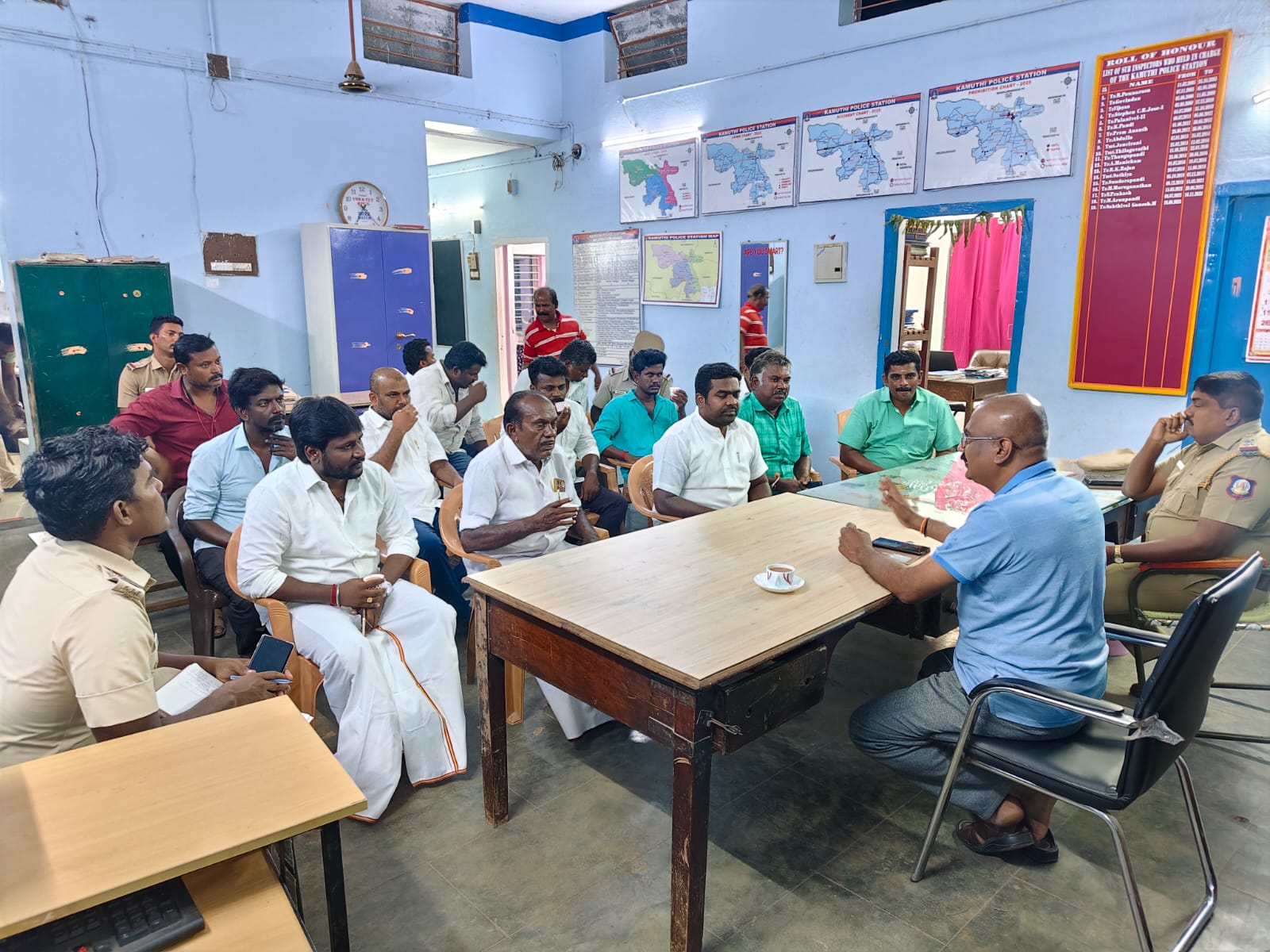 இராமநாதபுரம் மாவட்டம், கமுதி அருகேயுள்ள பசும்பொன் கிராமத்தில் வருகின்ற 30 ந்தேதி தேசியதலைவர் உ.முத்துராமலிங்கத்தேவர் குருபூஜை மற்றும் ஜெயந்தி விழா நடைபெற உள்ளது. இந்த விழாவை முன்னிட்டு அரசியல் கட்சிகளின் நிகழ்சிகளுக்கான வழிகாட்டு நெறிமுறைகள் குறித்து கமுதி துணைக்காவல் கண்காணிப்பாளர் இளஞ்செழியன் தலைமையில் ஆலோசனைக்கூட்டம் நடைபெற்றது. இதில் அனைத்து அரசியல் கட்சிகளின் பிரதிநிதிகள் கலந்து கொண்டனர். உடன் கமுதி காவல்நிலைய ஆய்வாளர், சார்பு ஆர்வாளர்கள் இருந்தனர்.