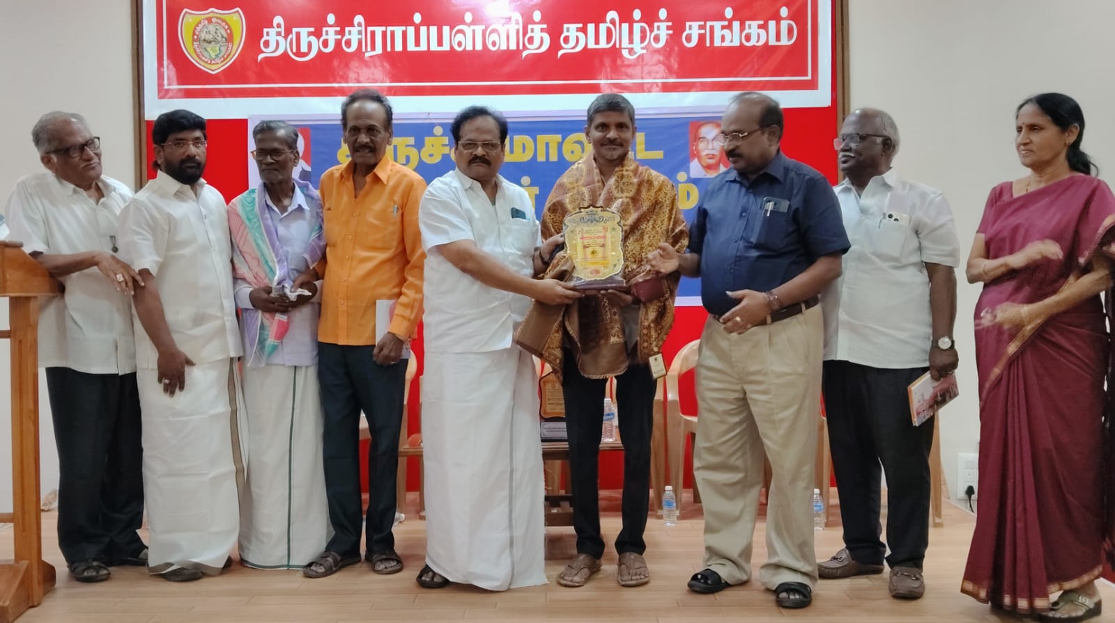 திருச்சி மாவட்ட எழுத்தாளர் சங்கம் சார்பில் ஆளுநர் விருது பெற்ற விஜயகுமார் மனிதநேயப் பணியினைச் பாராட்டி நினைவு பரிசினை