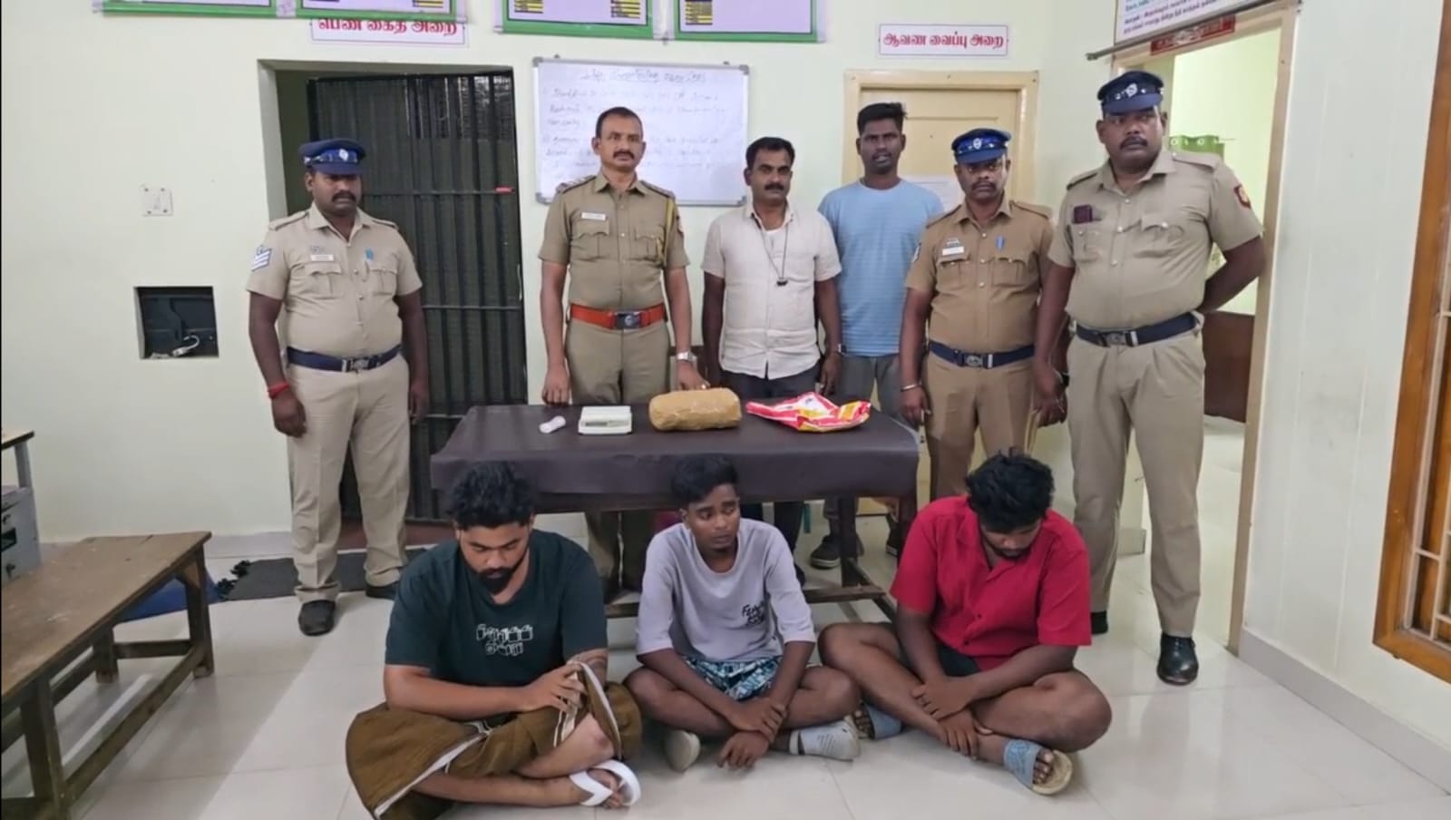 விசாரணையில் தாராபுரம் எல்லிஸ் நகர் தொகுதியைச் சேர்ந்த பழனிச்சாமி என்பவரது மகன் கோகுல் 22, தாராபுரம் மேற்கு பஜனை மட தெருவை சேர்ந்த சுரேஷ்குமார் என்பவர் மகன் பாலயுவராஜ் 22, தாராபுரம் அருகே உள்ள கொல்லப்பட்டி பகுதியைச் சேர்ந்த வேல்முருகன் என்பவரது மகன் பிரபு 20 இவர்கள் மூவரும் தாராபுரம் பகுதியில் சட்டவிரோதமாக கஞ்சாவை வாங்கிக் கொண்டு வந்து விற்பனைக்காக வைத்திருந்தது தெரிய வந்தது.