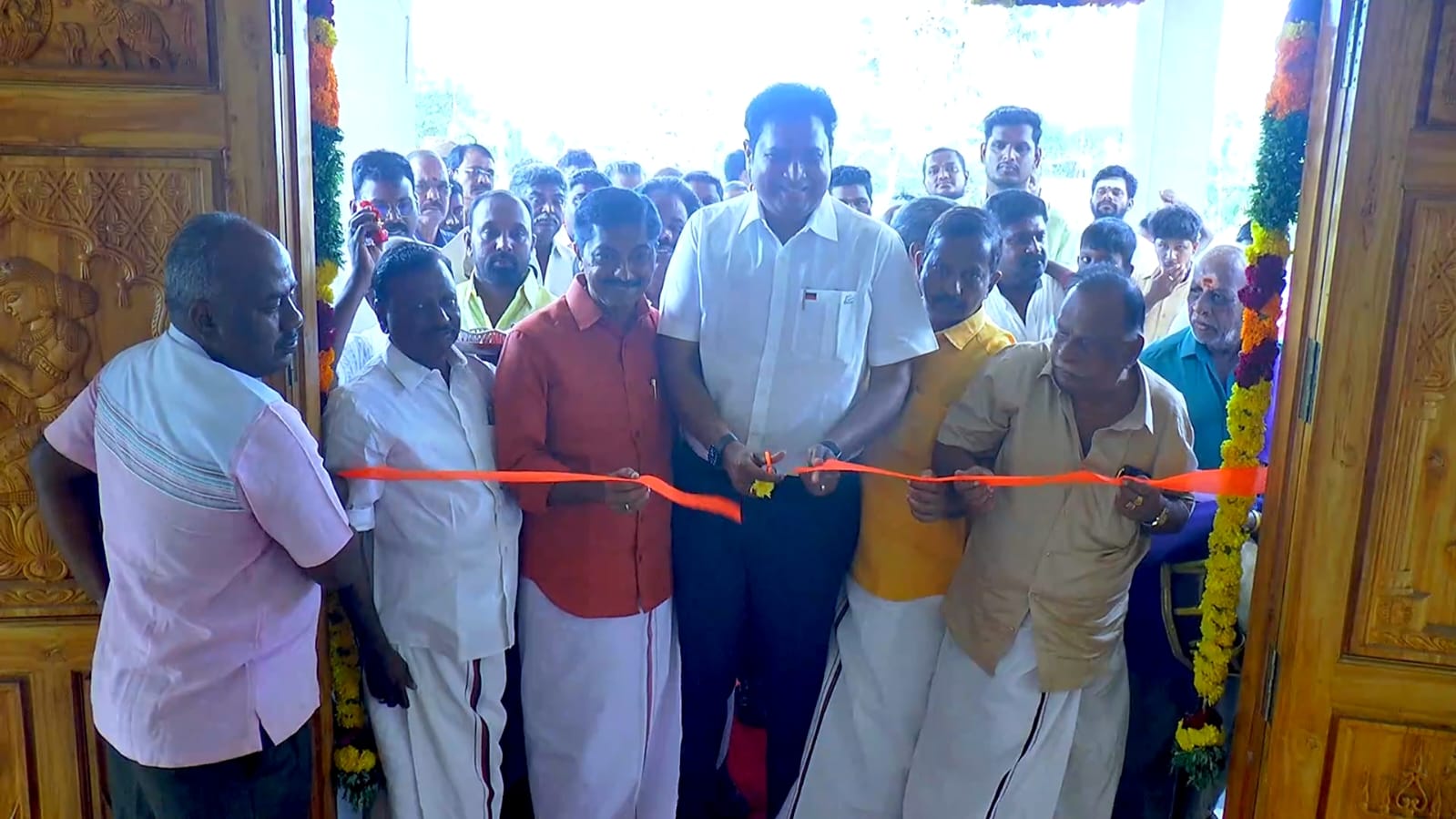 அதன் பிறகு இரண்டு ஆண்டுகளாக கட்டுமான பணிகள் நடைபெற்று முடிவடைந்த நிலையில் புதிய திருமண மண்டபத்தை தொழில் முதலீட்டு ஊக்குவிப்பு துறை அமைச்சர் டி.ஆர்.பி ராஜா திறந்து வைத்தார்.