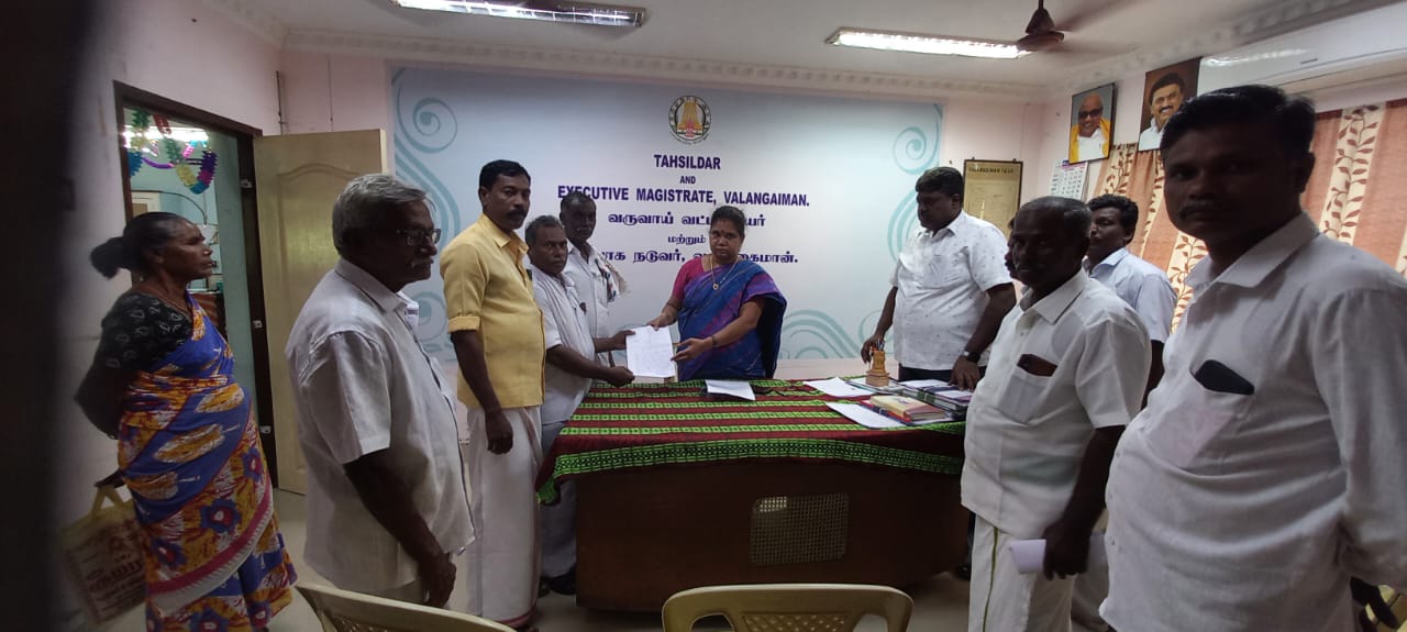 திருவாரூர் மாவட்டம் வலங்கைமான் தாலுக்காவில் அறுவடைக்கு தயாராக இருந்த குறுவை பயிர்கள் மழை நீரில் மூழ்கி சேதம் அடைந்ததை அடுத்து ஏக்கர் ஒன்றுக்கு ரூ.30 ஆயிரம் இழப்பீடு வழங்க வேண்டும் என தமிழ்நாடு விவசாயிகள் சங்கம் வட்டாட்சியர் அலுவலகத்தில் கோரிக்கை மனுவினை அளித்தனர்.