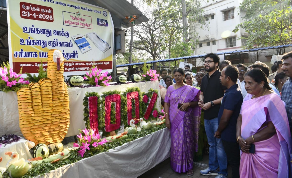 தேனி மாவட்டம் தேனி அல்லிநகரம் நகராட்சி உழவர் சந்தையில் வேளாண்மை மற்றும் உழவர் நலத்துறை மற்றும் தோட்டக்கலை துறையினர் சார்பில் நடைபெற உள்ள சட்டமன்ற பொதுத் தேர்தலில் ஜனநாயக கடமையான ஓட்டுப்பதிவு அனைவரும் தங்களது ஜனநாயக கடமையை நிறைவேற்றி 100 சதவீதம் வாக்குப்பதிவை வலியுறுத்தும் விதமாக காய்கறிகள் மற்றும் பழங்களைக் கொண்டு அமைக்கப்பட்ட சிற்பக் கண்காட்சியை மாவட்ட தேர்தல் அலுவலர் மாவட்ட கலெக்டர் ரஞ்ஜீத் சிங் பார்வையிட்டும் பொதுமக்களுக்கு விழிப்புணர்வை ஏற்படுத்தினார்