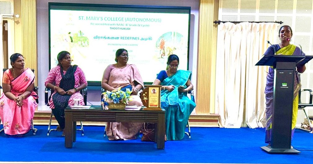 தூத்துக்குடி, தூய மரியன்னைக் கல்லூரியில் வீராங்கனைக் குழுவின் சார்பாக அழகி” என்றத் தலைப்பில் விழிப்புணர்வு நிகழ்ச்சி ஏற்பாடு செய்யப்பட்டது.