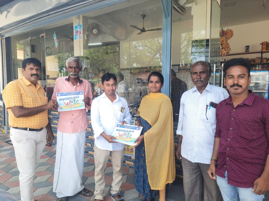 வருகின்ற ஏப்ரல் 23ஆம் தேதி நடைபெற உள்ள தமிழக சட்டமன்ற தேர்தல் 2026-ஐ முன்னிட்டு, 100% வாக்களிப்பை உறுதிப்படுத்தும் நோக்கில் பொதுமக்களிடம் நேரடியாக சென்று விழிப்புணர்வு ஏற்படுத்தப்பட்டது.