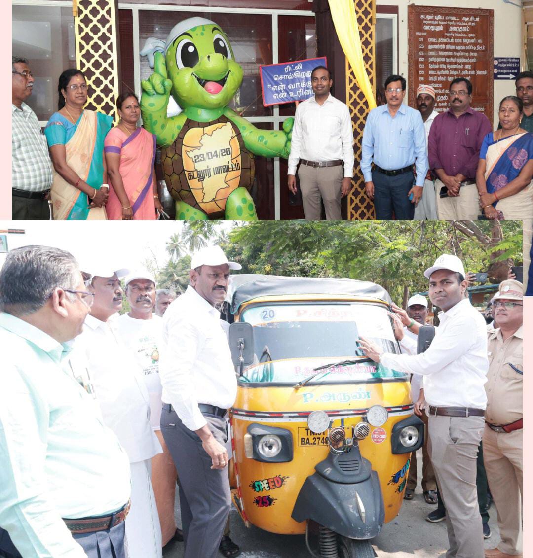 கடலூர்,நகர அரங்கம் அருகில். 2026-சட்டமன்ற பொதுத் தேர்தலில் 100 சதவீதம் வாக்குப்பதிவு குறித்து வாக்காளர்களுக்கு விழிப்புணர்வு ஏற்படுத்தும் வகையில் ஆட்டோ பேரணியினை மாவட்ட தேர்தல் அலுவலர் / மாவட்ட ஆட்சித்தலைவர்