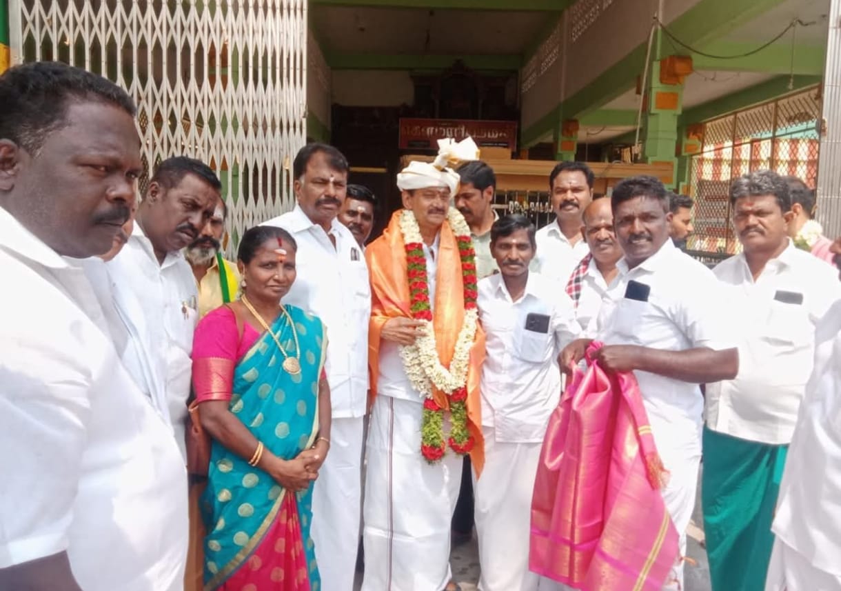 தேனி அருகே வீரபாண்டி கெளமாரியம்மன் கோவிலில் பூஜைகள் செய்து பிரச்சாரத்தை தொடங்கிய அண்ணா திமுக வேட்பாளர் தேனி மாவட்டம் போடிநாயக்கனூர் அண்ணா திமுக சட்டமன்ற தொகுதி வேட்பாளராக வி.டி. நாரண சாமி போட்டியிடுகிறார்