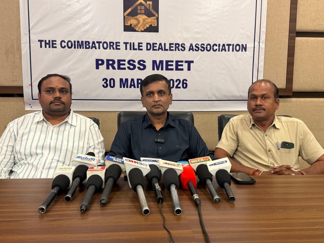 கோவையில் பந்தையசாலையில் உள்ள சீமா அலுவலகத்தில் கோயமுத்தூர் டைல்ஸ் டீலர்ஸ் சங்கத்தின் ஆலோசனை கூட்டம் நடைப்பெற்றது.இக்கூட்டத்திற்க்கு பின் செய்தியாளர்களை சந்தித்த சங்கத்தின் தலைவர் சுரபி பங்கஜ் அவர்கள், ஈரான் போர் பதற்றத்தால் ஏற்பட்டுள்ள எல்.பி.ஜி கேஸ் தட்டுபாட்டால் டைல்ஸ் உற்பத்தி பெருமளவு பாதிக்கப்பட்டுள்ளதாகவும் உற்பத்தி மற்றும் வரத்து குறைவால் தொழில் கடுமையாக பாதிக்கப்பட்டுள்ளது மட்டுமல்லாமல் அத்தொழிலை நம்பியுள்ள தொழிலாளர்களும் வேலை இழக்கும் அபாயம் ஏற்பட்டுள்ளதாகவும் அவர் வேதனை தெரிவித்தார்.