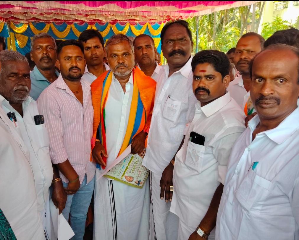 ,அனைத்து நிர்வாகிகளும் வேட்பாளருக்கு சால்வை அணிவித்து மரியாதை செய்தனர் இந்நிகழ்ச்சியில் பாட்டாளி மக்கள் ஒன்றிய கழக செயலாளர் சாமு, ஓம் சக்தி நடராஜன், மாநில நிர்வாகி பில்லா மாதேஷ் பாரதிய ஜனதா கட்சி ஒன்றிய தலைவர் சாமிநாதன், அம்மா மக்கள் முன்னேற்ற கழகம் ஒன்றிய செயலாளர்கள் அருள், சீனிவாசன்,அமமுக மாவட்ட சார்பு அணி செயலாளர் சகாதேவன், தமிழ் மாநில காங்கிரஸ் நிர்வாகி ரங்கநாதன், அனைத்திந்திய அண்ணா திராவிட முன்னேற்ற கழக நிர்வாகிகள் ஒன்றிய கழக துணை செயலாளர் சுரேந்திரன், ஒன்றிய பொருளாளர் ராமன், சார்பு அமைப்பு நிர்வாகிகள் கணேசன், கண்ணப்பன், தொழிலதிபர் பழனி, முன்னாள் ஊராட்சி மன்ற தலைவர் இளங்கோ, முன்னாள் ஊராட்சி கழக செயலாளர் வேடியப்பன், பெரியசாமி, சங்கர், கணேசன், ஞானப்பிரகாசம், வேடியப்பன், வீரப்பன், ராஜப்பன் சிராஜ், ஜெய்ஹிந்த், புருஷோத்தமன்,பாட்டாளி மக்கள் கட்சி நிர்வாகிகள் பாரதிய ஜனதா கட்சி நிர்வாகிகள் அம்மா மக்கள் முன்னேற்ற கழக நிர்வாகிகள் தமிழ் மாநில காங்கிரஸ் கட்சி நிர்வாகிகள் 1000 க்கும் மேற்பட்டோர் கலந்து கொண்டனர்
