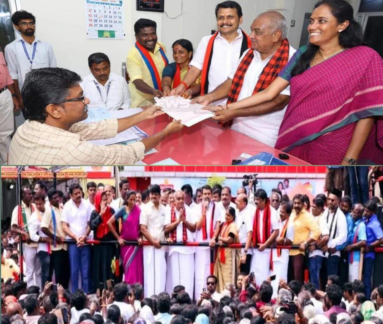 கரூர் சட்டமன்ற தொகுதியில் போட்டியிடும் திமுக வேட்பாளர் ஆசி. தியாகராஜனை ஆதரித்து முன்னாள் அமைச்சர் செந்தில் பாலாஜி தலைமையில் கரூர் பழைய பேருந்து நிலைய ரவுண்டானா அருகில் புதிய தேர்தல் அலுவலகத்தை (பணிமனையை) திறந்து வைத்து பின்னர் காங்கிரஸ், வன்னியர் மக்கள் கட்சி,விசிக உள்ளிட்ட கூட்டணி கட்சி நிர்வாகிகள் ஆயிரக்கணக்காணோர் ஊர்வலமாக கரூர் கோட்டாட்சியர் அலுவலகத்திற்கு சென்றனர்.