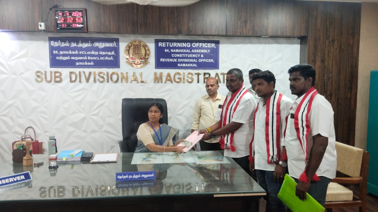 நாமக்கல் மாவட்டத்தில் சட்டமன்ற பொது தேர்தலை முன்னிட்டு வட்டாட்சியர் அலுவலகங்கள் மற்றும் வருவாய் கோட்டாட்சியர் அலுவலகங்களில் வேட்டு மனு தாக்கல் விறுவிறுப்பாக நடைபெற்று வருகிறது.